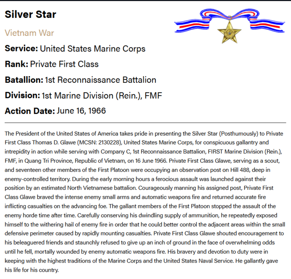 He survived the fight and made his way home, but his time in Vietnam still hastened his death: Battlefield conditions, injuries and malaria all exacerbated a kidney problem Bill was born with — so much so that he was medically discharged. Bill died just three years after returning home at age 24.
