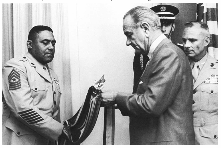 President Johnson presenting the Presidential Unit Citation