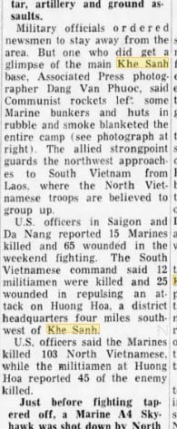 Time frame late Feb early March, 1968, Khe Sanh Combat Base,
