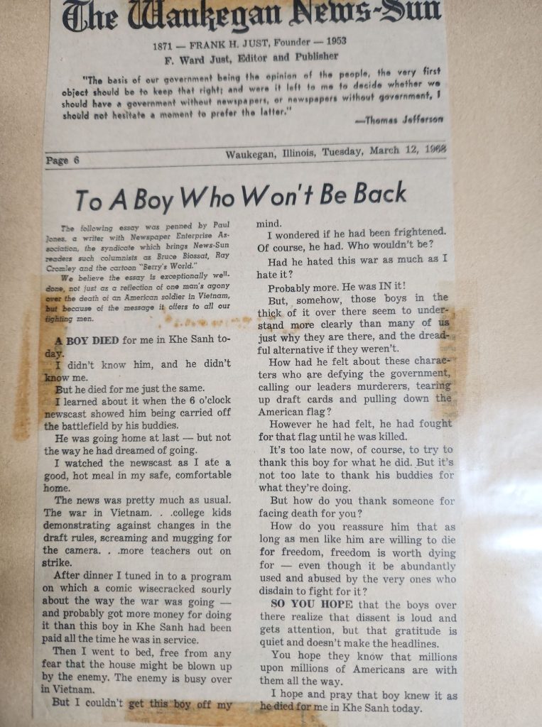I locate the address, and park nearby, as I walked toward the house I take note of the two small banners in the window, with Blue Stars, American Legion Decal and American flag flying from the second floor. My younger brother a Marine, is currently in Vietnam. Dad was always very “Gung Ho” about the military. We know he, served in the Army during WWII but, not much detail is known, he was also a Commander in the American Legion. I recalled as a youngster a Army uniform hung in his closet. I never inspected it to closely, remembered that it was an Ike jacket and had some stripes on the sleeve.